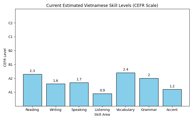 While I am far from fluent, I can definitely notice steady progress. Many people know about the “intermediate plateau”, where getting from intermediate level to advanced fluency takes a long time and a lot of effort. But I think there is also a “beginner’s plateau”. At the beginner level you build up your knowledge of grammar and frequent words. But to reach the intermediate level, you need to be able to read and listen to more native content, and that requires a level of language knowledge that is not a smooth jump from a beginner level. So the progress from A1 to A2 can happen quickly and smoothly, but from A2 to B1 takes an extended effort over a longer time. I only started to notice reading become easier a month ago, or 7 months into my study. I had been trying to read a difficult native level text, full of colorful prose with rare words that I had trouble remembering. One day I accidentally turned to the forward written by the author, instead of the main text. And I could understand it! I came across many words I had studied as flashcards, so I was adding additional mental connections for useful words. If I had more access to reading material graded for advanced beginners I would have more opportunities like this. Finding resources like this has been a challenge in Vietnamese, which doesn’t have the same numbers of learners as the most popular foreign languages to learn.